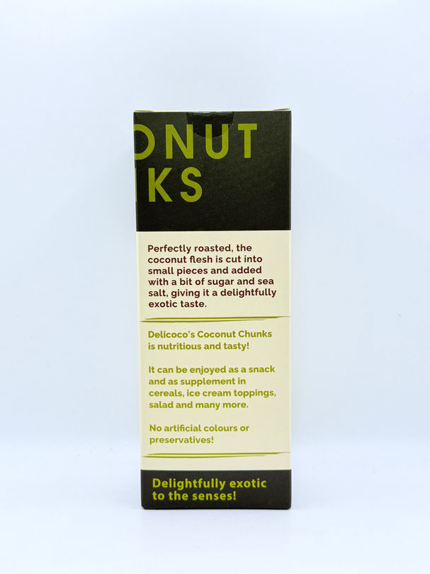 Discover the tropical delight of Delicoco - Coconut Chunks Original. Delicoco premium coconut chunks are perfect for healthy snacking, adding a nutritious twist to your daily routine. Made from the finest coconuts, these chunks are both delicious and packed with essential nutrients. Enjoy the natural sweetness and crisp texture any time of the day. Elevate your snack game with Delicoco and indulge in a taste of paradise!